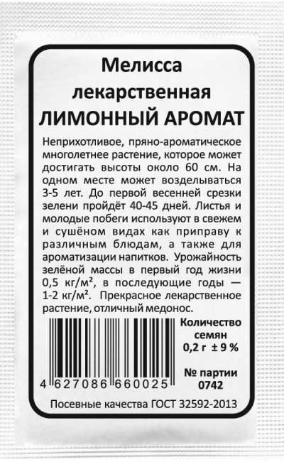 МЕЛИССА Лимонный Аромат-лекарственная...